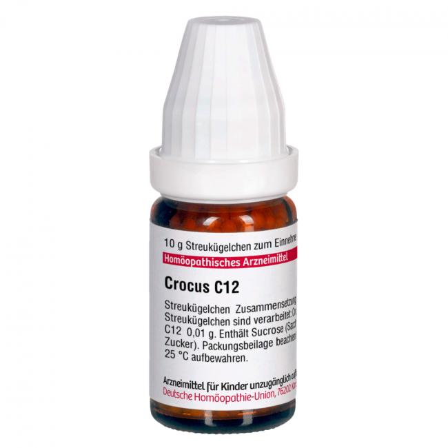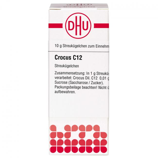 Crocus C 12. Anwendungsgebiete: Registriertes homöopathisches Arzneimittel, daher ohne Angabe einer therapeutischen Indikation. Warnhinweis: Dieses Arzneimittel enthält Sucrose (Saccharose / Zucker).
