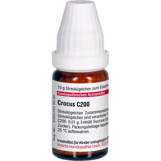 CROCUS C 200 Globuli. Anwendungsgebiete: Anwendungsgebiete: Registriertes homöopathisches Arzneimittel, daher ohne Angabe einer therapeutischen Indikation. Warnhinweis: Dieses Arzneimittel enthält Sucrose (Saccharose / Zucker).