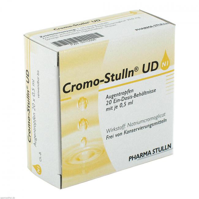 Die regelmäßige tägliche Anwendung von Cromo-Stulln UD ist erforderlich, da die Tropfen keinen Soforteffekt haben. Cromo-Stulln UD ist nur zur Vorbeugung geeignet. Sie sollten auch nach dem Abklingen der Beschwerden die Behandlung mit Cromo-Stulln UD so lange fortführen, wie Sie den allergisierenden Substanzen (Hausstaub, Pilzsporen, Pollen usw.) ausgesetzt sind. Der Therapieerfolg ist regelmäßig durch den Augenarzt zu kontrollieren. Die Häufigkeit der Anwendung kann aber auch nach Erreichen der therapeutischen Wirkung durch den Arzt reduziert werden, solange Beschwerdefreiheit aufrecht erhalten wird. Wenn Sie Cromo-Stulln UD über einen längeren Zeitraum anwenden wollen, sollten Sie die Notwendigkeit der Behandlung vom Arzt feststellen lassen. Bitte sprechen Sie mit Ihrem Arzt oder Apotheker, wenn Sie den Eindruck haben, dass die Wirkung von Cromo-Stulln UD zu stark oder zu schwach ist. Wenn Sie eine größere Menge Cromo-Stulln UD angewendet haben, als Sie sollten Informieren Sie bitte Ihren Arzt oder Apotheker, jedoch ist der Behandlungserfolg nicht gefährdet.