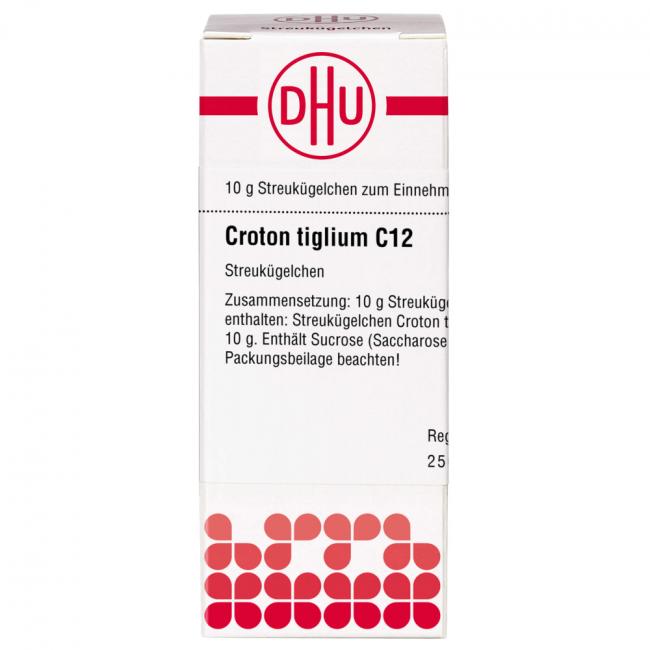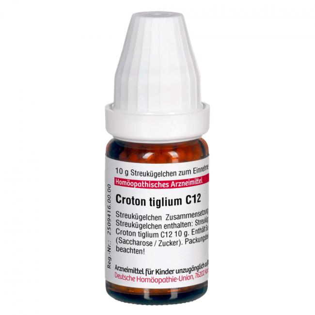 Croton tiglium C 12. Anwendungsgebiete: Registriertes homöopathisches Arzneimittel, daher ohne Angabe einer therapeutischen Indikation. Warnhinweis: Dieses Arzneimittel enthält Sucrose (Saccharose / Zucker).