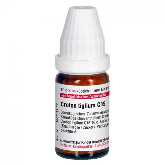 Croton tiglium C 15. Anwendungsgebiete: Registriertes homöopathisches Arzneimittel, daher ohne Angabe einer therapeutischen Indikation. Warnhinweis: Dieses Arzneimittel enthält Sucrose (Saccharose / Zucker).