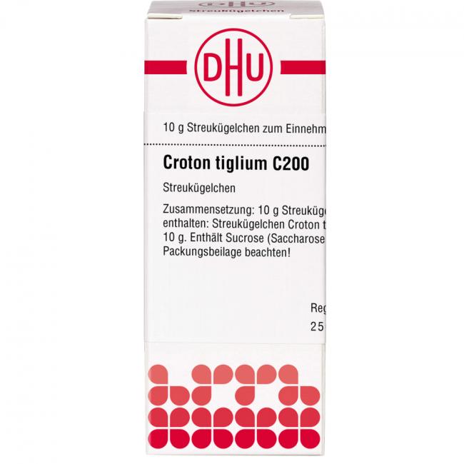 Croton Tiglium C 200. Anwendungsgebiete: Registriertes homöopathisches Arzneimittel, daher ohne Angabe einer therapeutischen Indikation. Warnhinweis: Dieses Arzneimittel enthält Sucrose (Saccharose / Zucker).