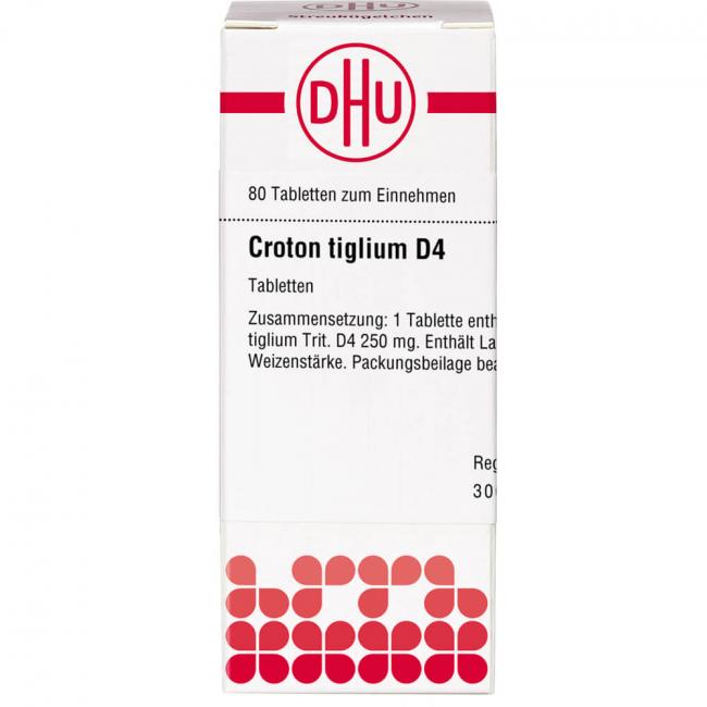 Croton Tiglium D 4 ist eine Tablette zum Einnehmen. Packung mit 80 und 200 Tabletten.