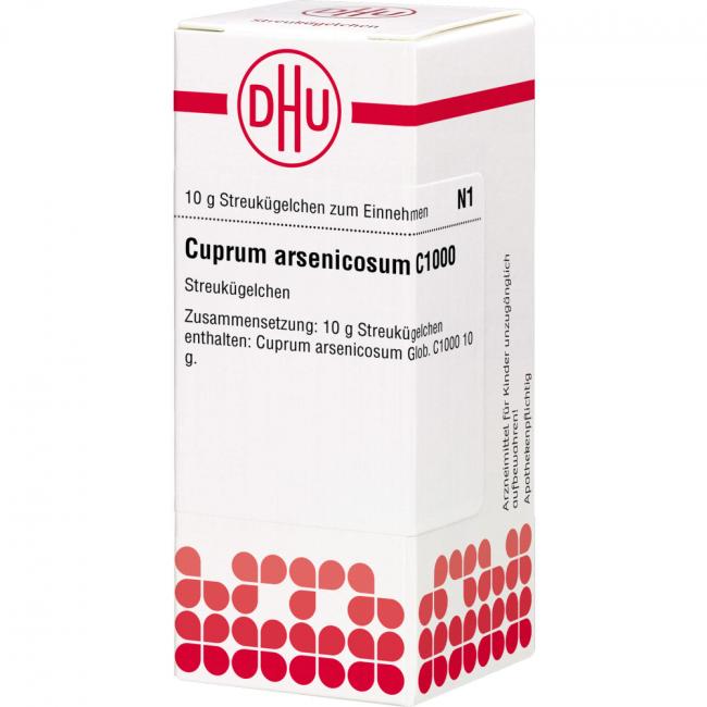 Cuprum Arsenicosum C 1000. Anwendungsgebiete: Registriertes homöopathisches Arzneimittel, daher ohne Angabe einer therapeutischen Indikation. Warnhinweis: Dieses Arzneimittel enthält Sucrose (Saccharose / Zucker).