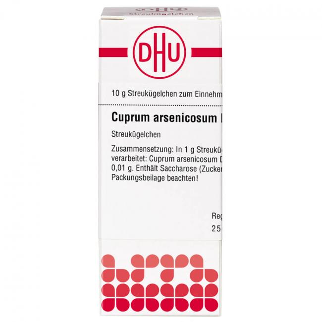 Cuprum arsenicosum D 20. Anwendungsgebiete: Registriertes homöopathisches Arzneimittel, daher ohne Angabe einer therapeutischen Indikation. Warnhinweis: Dieses Arzneimittel enthält Sucrose (Saccharose / Zucker).