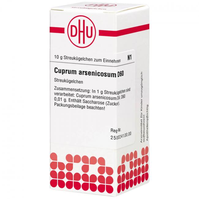 Cuprum arsenicosum D 60. Anwendungsgebiete: Registriertes homöopathisches Arzneimittel, daher ohne Angabe einer therapeutischen Indikation. Warnhinweis: Dieses Arzneimittel enthält Sucrose (Saccharose / Zucker).