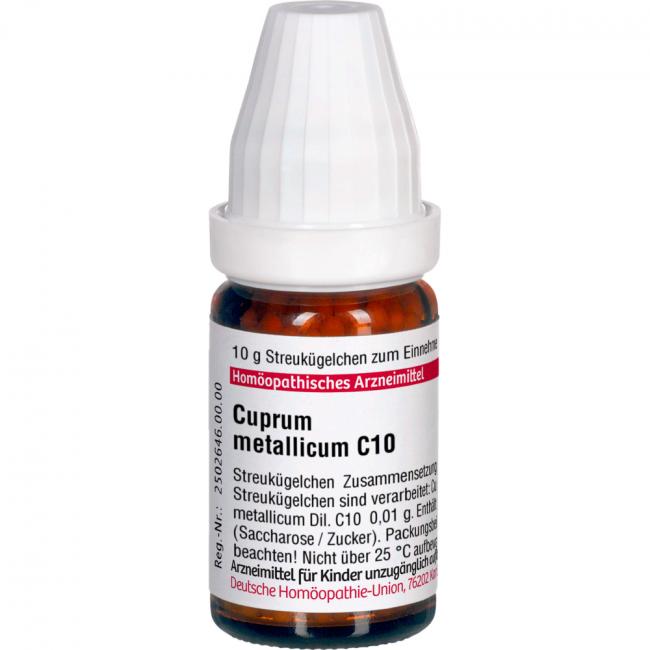 Cuprum Metallicum C 10 ist ein homöopathisches Arzneimittel. Registriertes homöopathisches Arzneimittel, daher ohne Angabe einer therapeutischen Indikation.