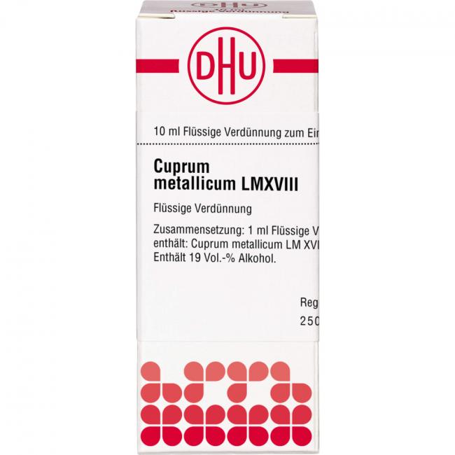 LM Cuprum Metallicum XVIII. Anwendungsgebiete: Registriertes homöopathisches Arzneimittel, daher ohne Angabe einer therapeutischen Indikation. Warnhinweis: Enthält 19 Vol.% Alkohol.