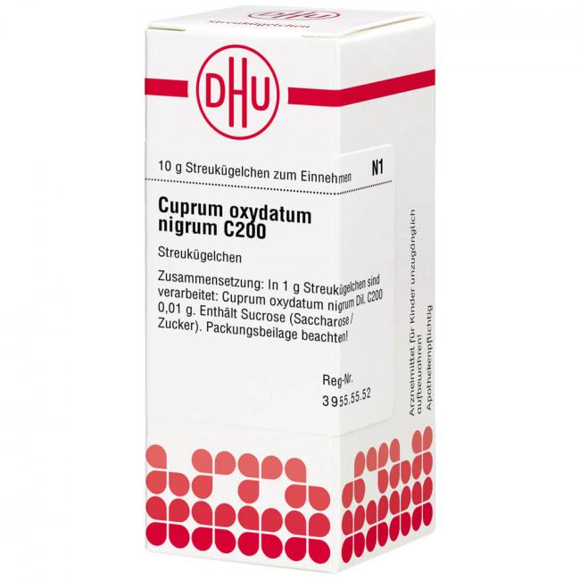 Cuprum oxydatum nigrum C 200. Anwendungsgebiete: Registriertes homöopathisches Arzneimittel, daher ohne Angabe einer therapeutischen Indikation. Warnhinweis: Dieses Arzneimittel enthält Sucrose (Saccharose / Zucker).