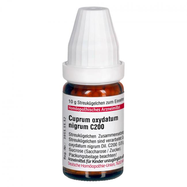 Cuprum oxydatum nigrum C 200 ist ein homöopathisches Arzneimittel. Registriertes homöopathisches Arzneimittel, daher ohne Angabe einer therapeutischen Indikation.