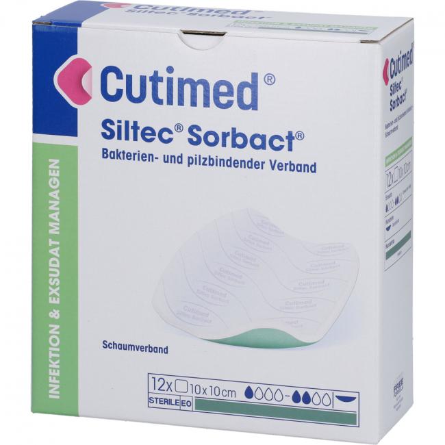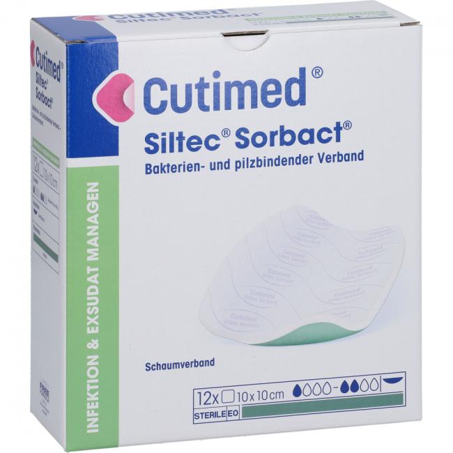 Pflichtangaben CUTIMED Siltec Sorbact PU-Verb.10x10cm o.Haftrand, 12 Stück