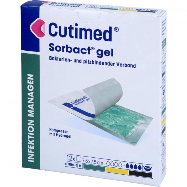 Produktinformationen CUTIMED Sorbact Gel Kompressen 7,5x7,5 cm, 12 Stück