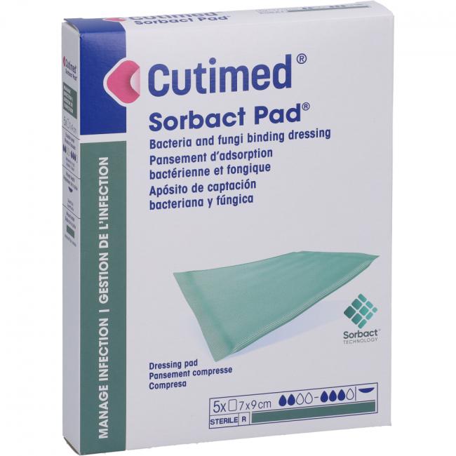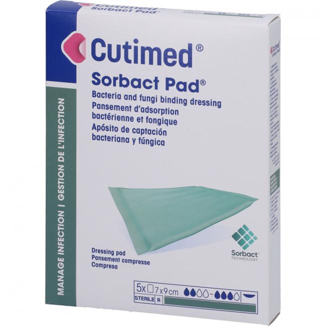 Pflichtangaben CUTIMED Sorbact Pad Kompressen 7x9 cm, 5 Stück