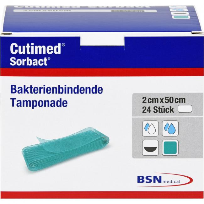Produktinformationen CUTIMED Sorbact Tamponaden 2x50 cm, 24 Stück