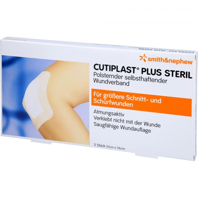 Pflichtangaben CUTIPLAST Plus steril 7,8x15 cm Verband, 5 Stück