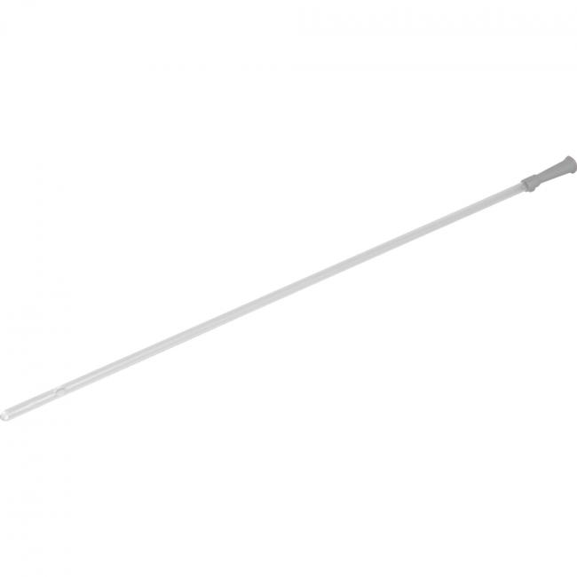 Darmrohre mit und ohne Trichteransatz. Die Darmrohre haben zwei seitliche Augen. Eine größenabhängige Farbkodierung des Trichteransatzes erleichtert die Auswahl des geeigneten Darmrohres für das Fachpersonal.