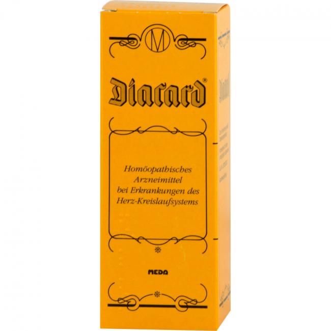 Diacard ist ein homöopathisches Arzneimittel bei Erkrankungen des Herz-Kreislaufsystems. Anwendungsgebiete: Die Anwendungsgebiete leiten sich von den homöopathischen Arzneimittelbildern ab. Dazu gehören: funktionelle Herzbeschwerden bei allgemeiner vegetativer Labilität. Hinweis: Bei Beklemmungsgefühl in der Herzgegend und Schmerzen, die in die Arme, den Oberbauch oder die Halsgegend ausstrahlen können, oder bei Atemnot ist eine ärztliche Abklärung zwingend erforderlich.