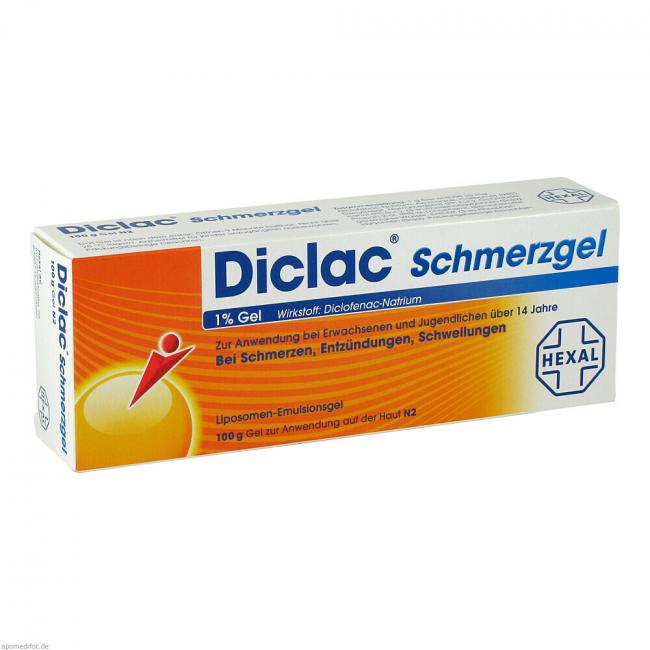 Wirkstoff: Diclofenac-Natrium. Anwendungsgebiete: bei Erwachsenen zur äußerlichen Behandlung von Schmerzen, Entzündungen und Schwellungen bei Sport- und Unfallverletzungen (Verstauchungen, Prellungen, Zerrungen), rheumatischen Erkrankungen der Weichteile (Sehnen- und Sehnenscheidenentzündungen, Schleimbeutelentzündungen, Entzündungen im Muskel- und Kapselbereich) und bei degenerativen Erkrankungen der peripheren Extremitätengelenke. Bei Jugendlichen ab 14 Jahren zur Kurzzeitbehandlung zur lokalen, symptomatischen Behandlung von Schmerzen bei akuten Prellungen, Zerrungen oder Verstauchungen infolge eines stumpfen Traumas.