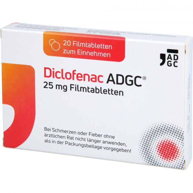 Pflichtangaben DICLOFENAC ADGC 25 mg Filmtabletten, 20 Stück