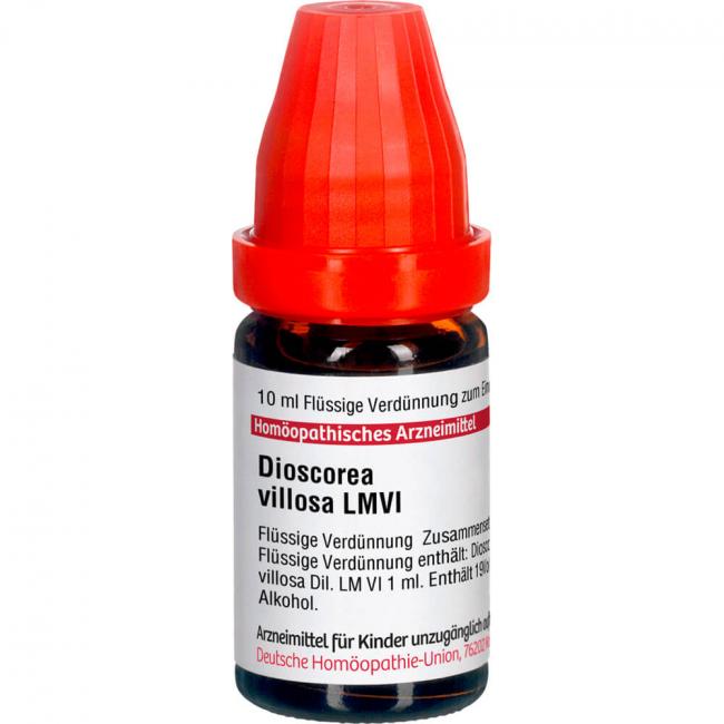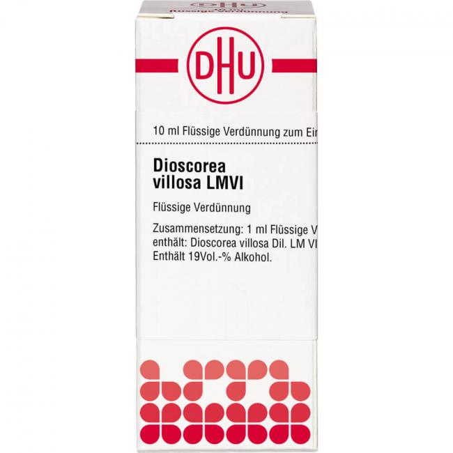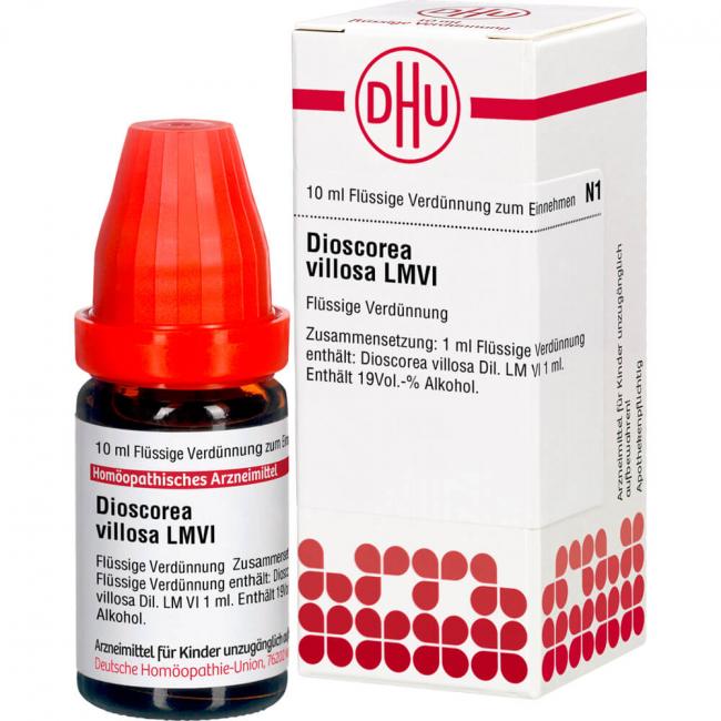 LM Dioscorea VIllosa VI. Anwendungsgebiete: Registriertes homöopathisches Arzneimittel, daher ohne Angabe einer therapeutischen Indikation. Warnhinweis: Enthält 19 Vol.% Alkohol.