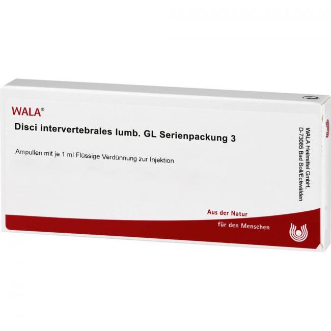 Disci intervertebrales (lumbales) Gl Serienpackung III, Flüssige Verdünnung zur Injektion. Wirkstoff: Disci intervertebrales lumbales bovis Gl. Anwendungsgebiete: Registriertes homöopathisches Arzneimittel der anthroposophischen Therapierichtung, daher ohne Angabe einer therapeutischen Indikation.
