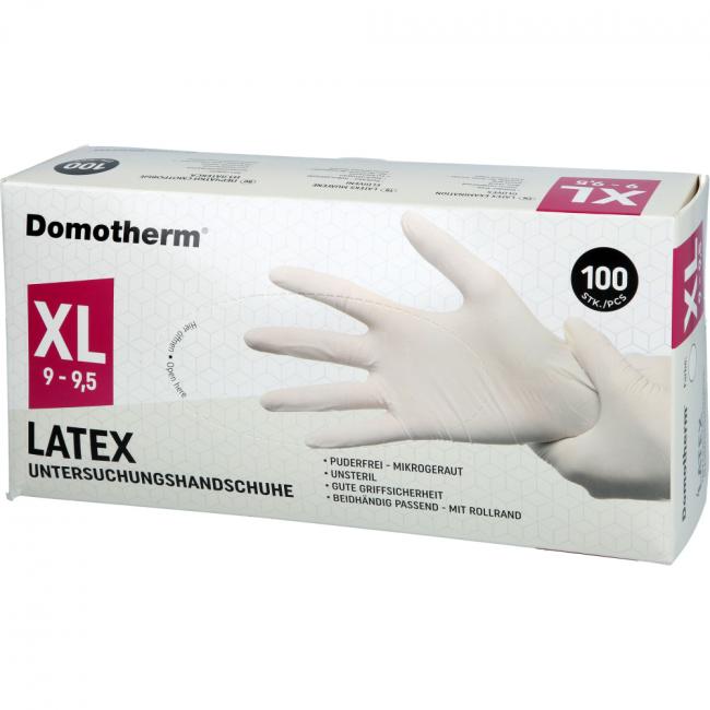 Pflichtangaben DOMOTHERM Unt.Handschuhe Latex unsteril pf XL weiß, 100 Stück