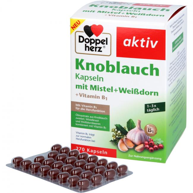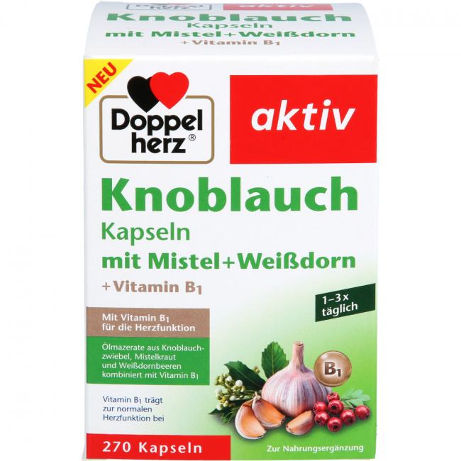 Pflichtangaben DOPPELHERZ Knobl.Kap.m.Mistel+Weißdorn+Vitamin B1, 270 Stück