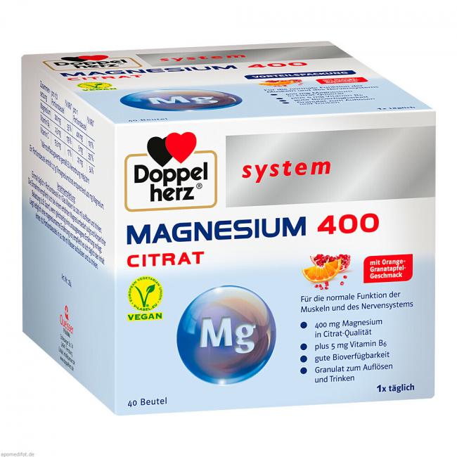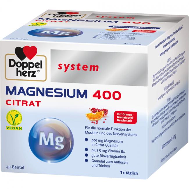 Produktinformationen DOPPELHERZ Magnesium 400 Citrat system Granulat, 40 Stück