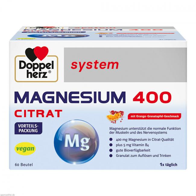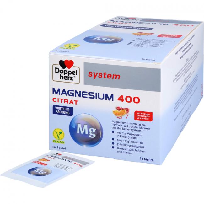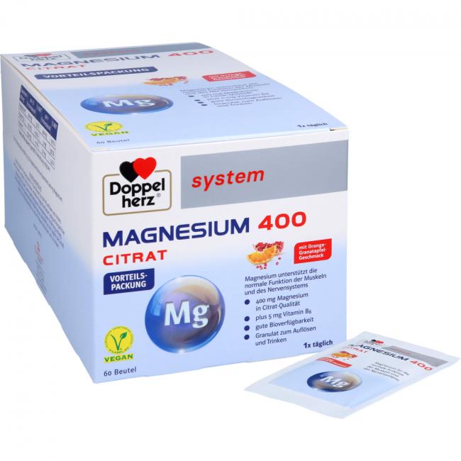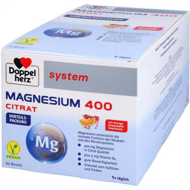 Produktinformationen DOPPELHERZ Magnesium 400 Citrat system Granulat, 60 Stück