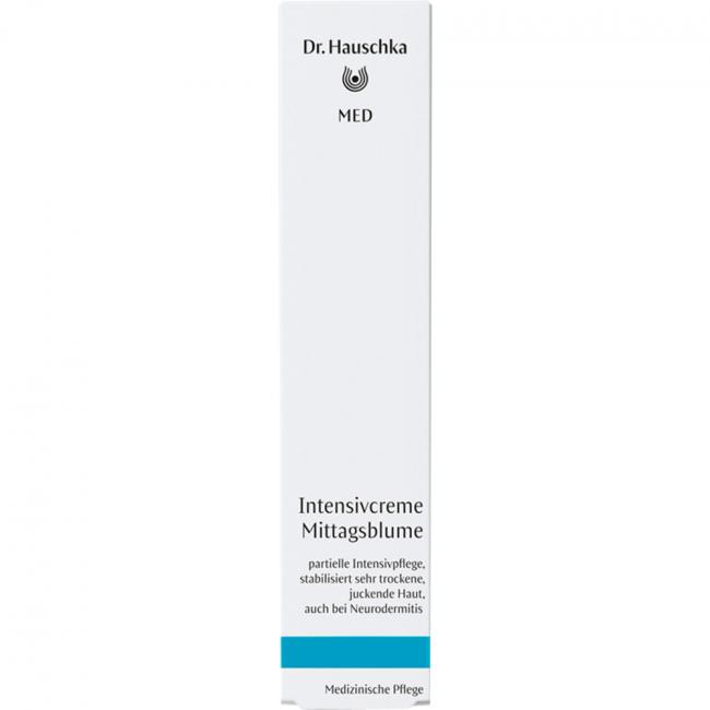 Die Dr. Hauschka MED Intensivcreme Mittagsblume stabilisiert die sehr trockene, schuppige, juckende Haut und schenkt besonders trockenen Hautpartien intensive Pflege. Die Komposition mit feuchtigkeitsaktivierendem Mittagsblumenpresssaft sowie reichhaltigen Pflanzenölen und Wachsen stabilisiert die Barrierefunktion der Haut und verhilft ihr wieder zu einem natürlichen Fett-Feuchtigkeits-Gleichgewicht. Der konzentrierte Einsatz von kostbarem, frisch gepresstem Saft der Mittagsblume versorgt die Haut intensiv mit Feuchtigkeit und hilft ihr, diese anhaltend zu bewahren. Die Kombination aus Avocado- und Sesamöl, Mangobutter, Sheabutter sowie Mandel- und Jojobaöl ist genau auf die Bedürfnisse der sehr trockenen und neurodermitischen Haut abgestimmt. Die reichhaltige Creme reduziert spürbar und nachhaltig Hauttrockenheit, Spannungsgefühle und Juckreiz. Studien bestätigen die sehr gute Hautverträglichkeit und Pflegewirkung auch bei Neurodermitis. Die Intensivcreme Mittagsblume ist bewusst unparfümiert und auch für Säuglinge geeignet.