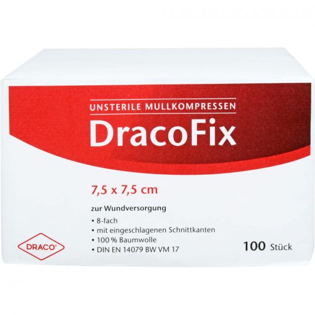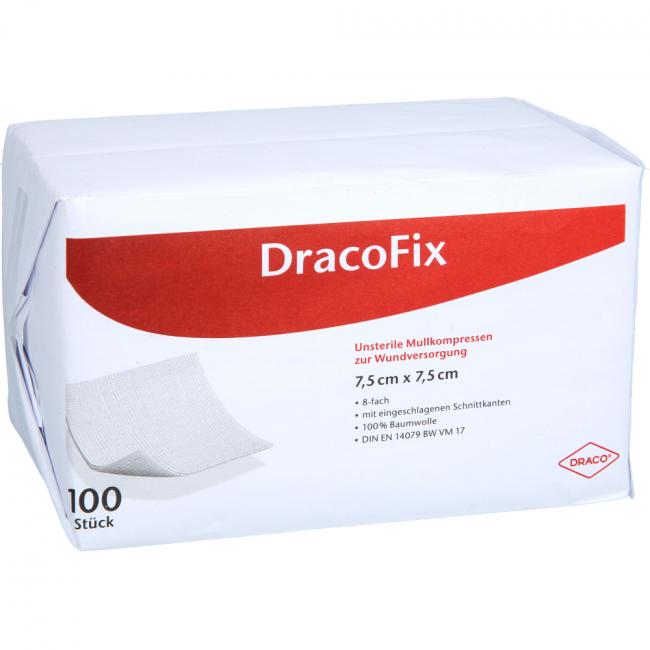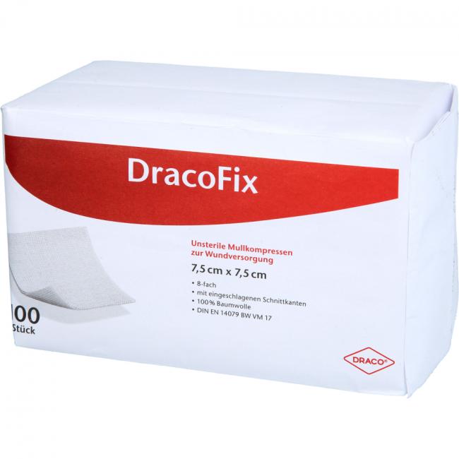 Pflichtangaben DRACOFIX OP-Kompressen 7,5x7,5 cm unsteril 8fach, 100 Stück