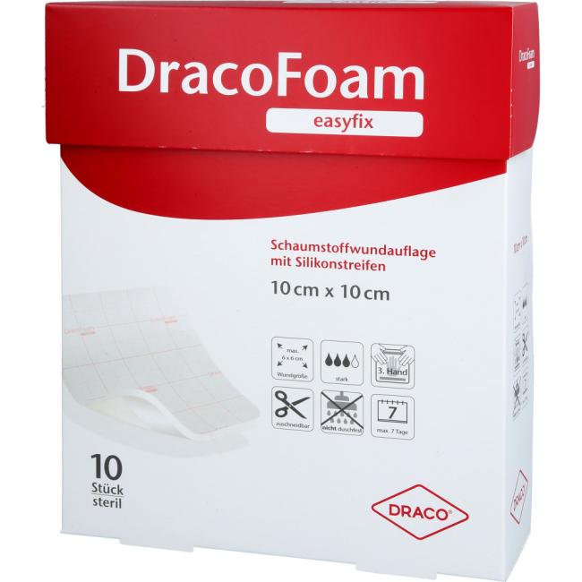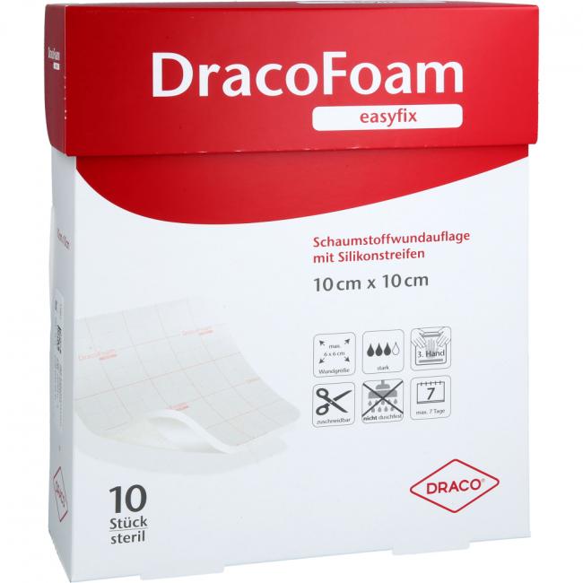 Pflichtangaben DRACOFOAM easyfix Schaumstoff Wundauflage 10x10 cm, 10 Stück