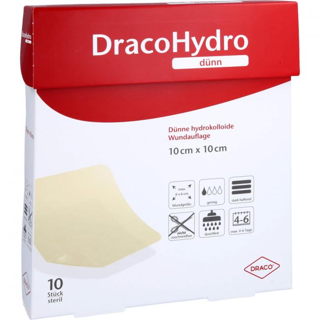 Pflichtangaben DRACOHYDRO dünn Hydrokoll.Wundauflage 10x10 cm, 10 Stück