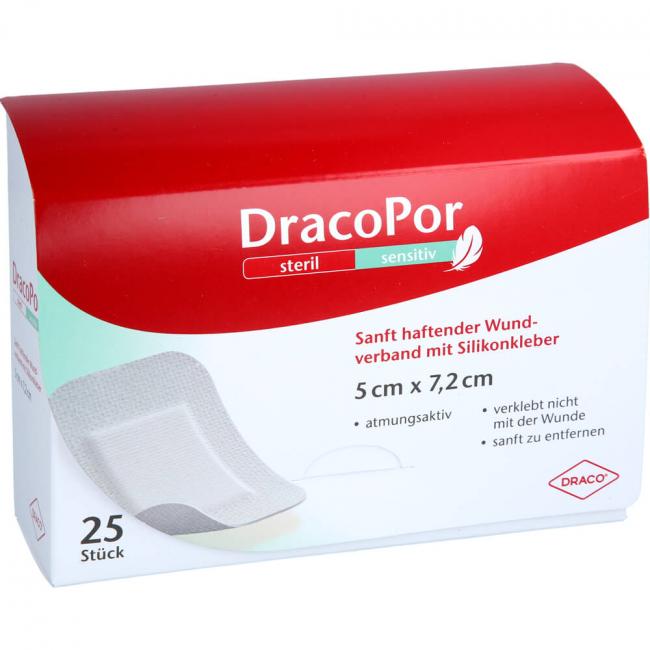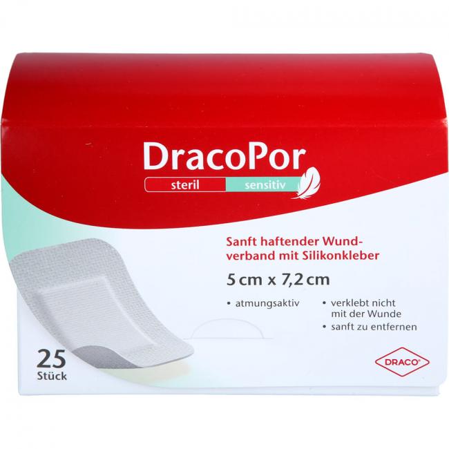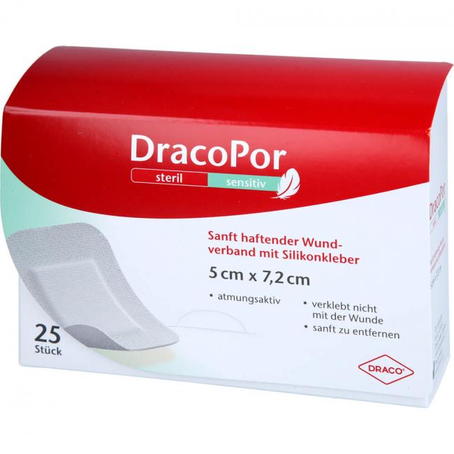 Pflichtangaben DRACOPOR sensitiv 5x7,2 cm steril m.Silikonkleber, 25 Stück