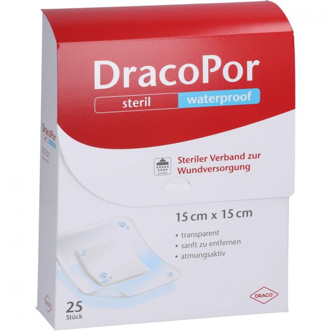 Pflichtangaben DRACOPOR waterproof Wundverband 15x15 cm steril, 25 Stück