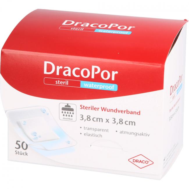 Pflichtangaben DRACOPOR waterproof Wundverband 3,8x3,8 cm steril, 50 Stück