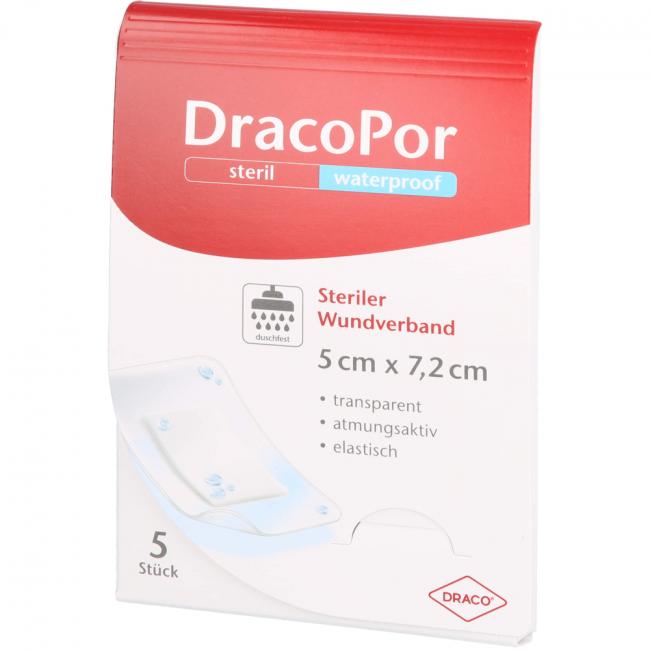 Pflichtangaben DRACOPOR waterproof Wundverband 5x7,2 cm steril, 5 Stück