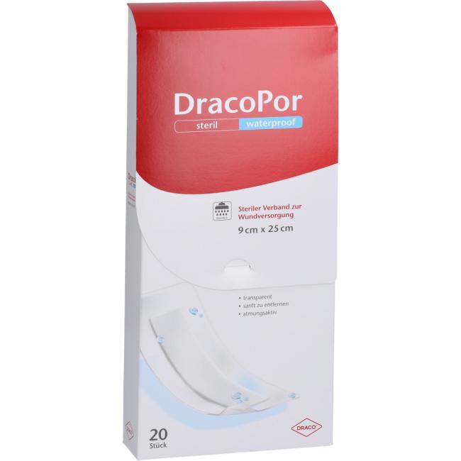 Pflichtangaben DRACOPOR waterproof Wundverband 9x25 cm steril, 20 Stück