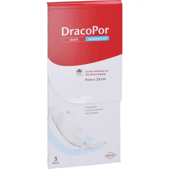 Pflichtangaben DRACOPOR waterproof Wundverband 9x25 cm steril, 3 Stück