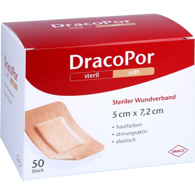 Pflichtangaben DRACOPOR Wundverband 5x7,2 cm steril hautfarben, 50 Stück