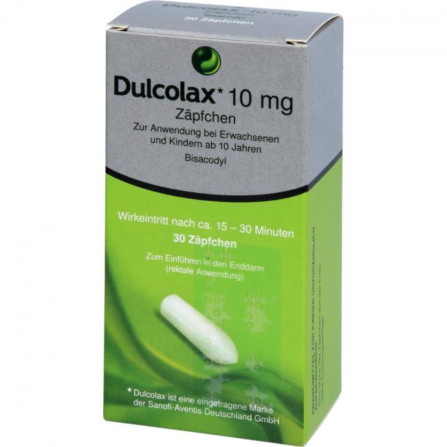 Dulcolax 10 mg Zäpfchen. Wirkstoff: Bisacodyl. Anwendungsgebiete: Bei Verstopfung, bei Erkrankungen, die eine erleichterte Darmentleerung erfordern, sowie zur Darmentleerung bei Behandlungsmaßnahmen und Maßnahmen zum Erkennen von Krankheiten (therapeutische und diagnostische Eingriffe) am Darm.