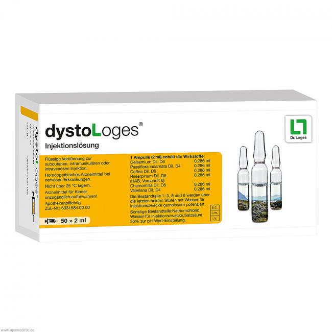 dystoLoges Injektionslösung, Flüssige Verdünnung zur Injektion. Anwendungsgebiete: Die Anwendungsgebiete leiten sich von den homöopathischen Arzneimittelbildern ab. Dazu gehören: Nervöse Verstimmungszustände mit Schlafstörungen.