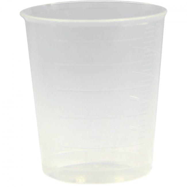 Einnehmeglas aus Kunststoff mit Deckel graduiert, 30 ml, transparent