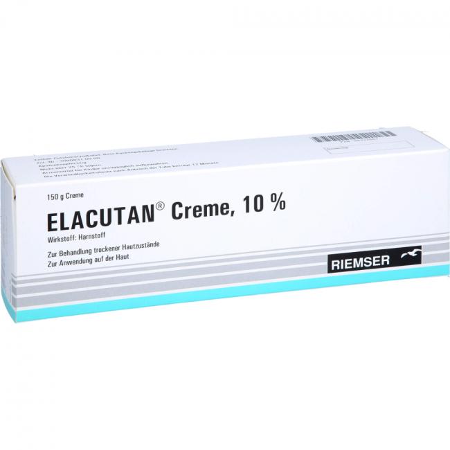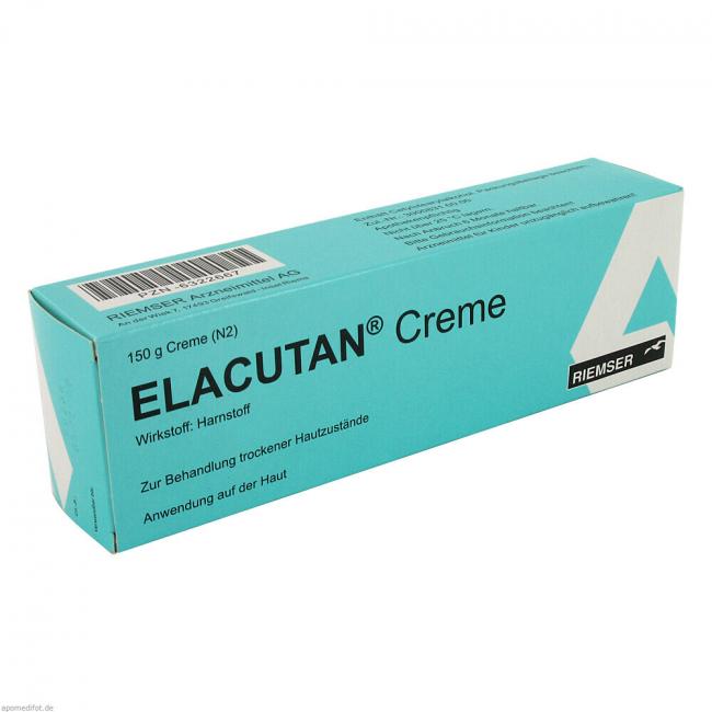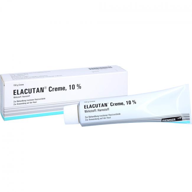Elacutan Creme 10%. Wirkstoff: Harnstoff. Anwendungsgebiete: Zur Linderung trockener Hautzustände (Exsikkationen), die auch krankhafte Veränderungen nach sich ziehen können, wie z.B. bei Neurodermitis (atopischer Dermatitis), Altershaut oder Ichthyosen [angeborene Verhornungsstörungen (Fischschuppenkrankheit)] und zur Basisbehandlung während symptomfreier Intervalle bei Neurodermitis (atopisches Ekzem). Warnhinweis: Enthält Cetylstearylalkohol/Cetylalkohol.