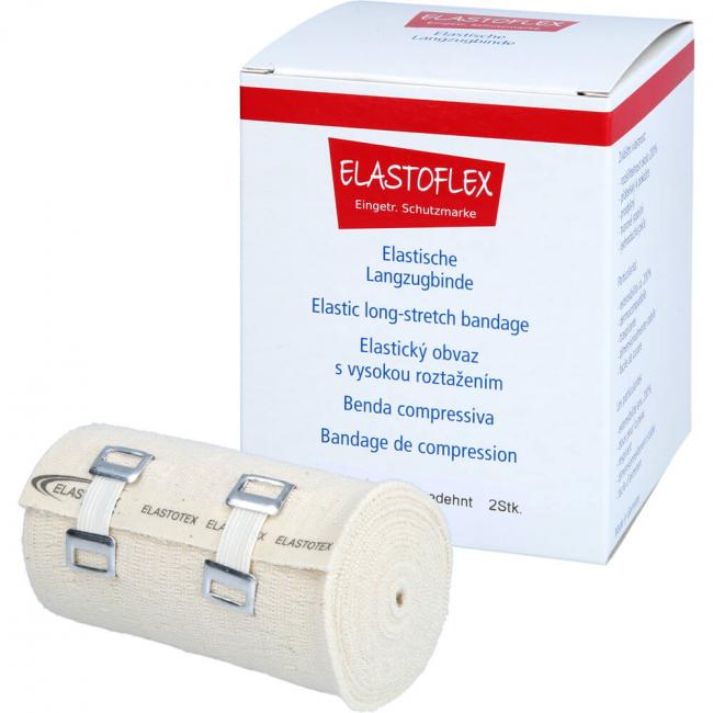 Die elastische Langzugbinde mit kräftiger Webart zeichnet sich durch ein hohes Dehnverhalten von ca. 200% aus. Damit ist sie besonders für Stützverbände, Entlastungsverbände, Kompressionsverbände und Sportbandagen geeignet. Elastoflex gewährleistet zu dem bei der phlebologischen und lymphologischen Versorgung eine optimale Wirkung bei erweiterten Venen. Und das, ohne Druckbeschwerden zu verursachen. Durch die hohe Elastizität passt sich die Langzugbinde an die Verformung des Beines an. Haut und Muskulatur sind einer dauerhaften Feinmassage ausgesetzt, was den Heilungsprozess zusätzlich unterstützt.