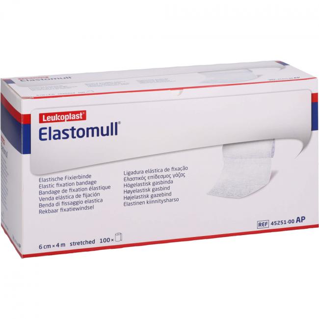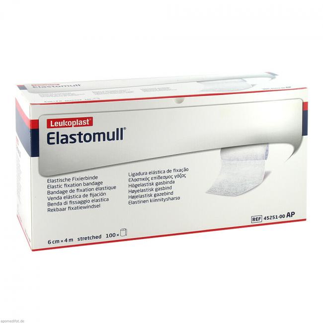 Eine Fixierbinde sollte zuverlässig, rutschfest und faltenfrei sitzen und dem Patienten die Bewegungsfreiheit weitgehend erhalten. Elastomull erfüllt diese Anforderungen. Elastomull fixiert zuverlässig, rutschfest und flexibel, gewährleistet hohen Tragekomfort und gute Hautverträglichkeit und ermöglicht schnelles Anlegen. Elastomull ist eine elastische Fixierbinde. Der hohe Baumwollanteil und die leichte, luftige Webstruktur verleihen Elastomull angenehme Trageeigenschaften (gute Atmungsaktivität, Schwitzen und Hautjucken werden vermieden) und gewährleisten eine besonders gute Hautverträglichkeit. Elastomull besteht aus 42% Baumwolle, 29% Viskose und 29% Polyamid. Latexfreie Rezeptur. Nicht mit Naturkautschuklatex hergestellt.