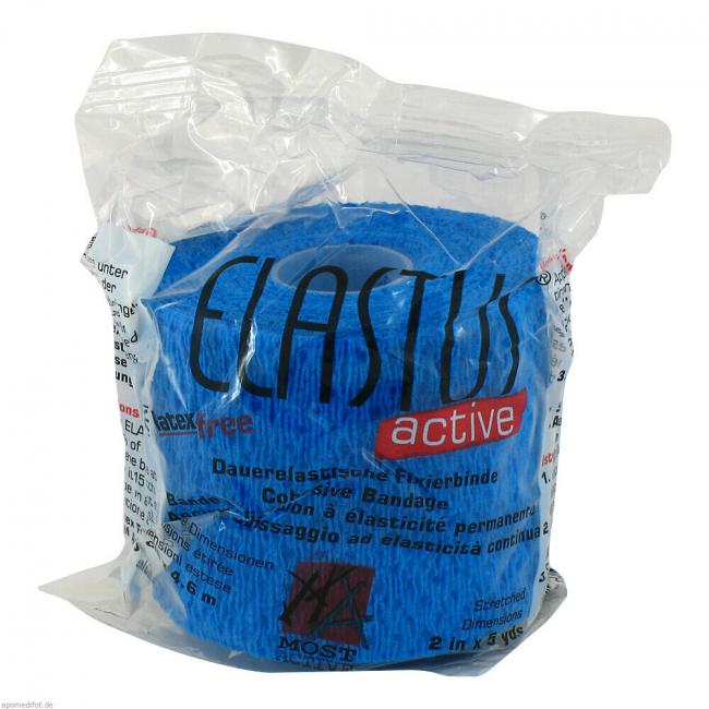 Elastus active ist atmungsaktiv, wasserabweisend und mit einem hypoallergenen Polyacrylat-Kleber beschichtet. Einsatzgebiete sind in erster Linie Stützen, Entlasten und Fixieren. Die Binde passt sich dem wechselnden Druck der Gefäße an und reduziert so die Blutstaugefahr. Großer Einsatzbereich in der Sportmedizin, nach Luxationen, Distorsionen oder Kontusionen. Auch als stützender Verband nach Frakturen, Sehnen-, und Muskelverletzungen.
