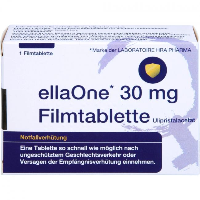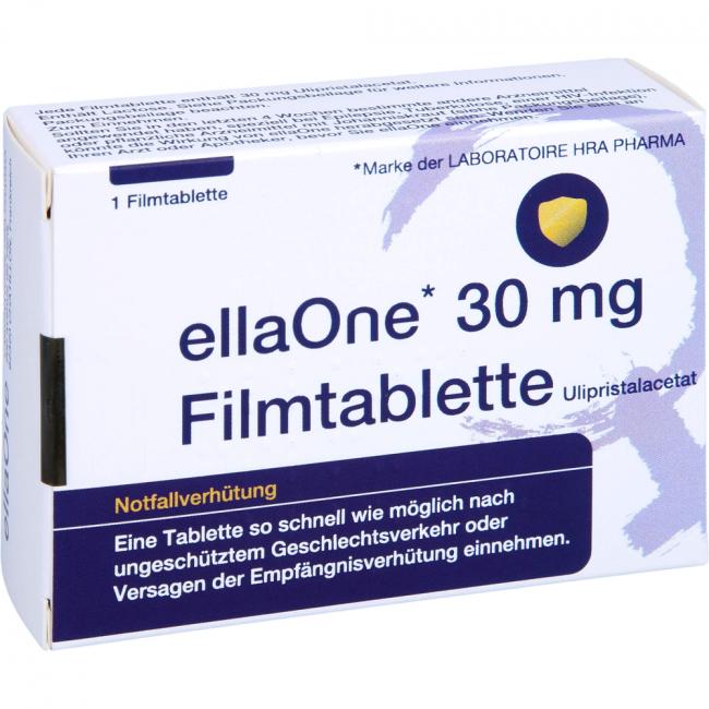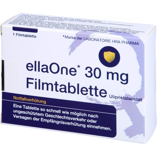 ellaOne 30 mg Filmtablette. Wirkstoff: Ulipristalacetat. Anwendungsgebiete: Verhütungsmittel zur Verhütung einer Schwangerschaft nach ungeschütztem Geschlechtsverkehr oder einem Versagen der Verhütungsmethode.