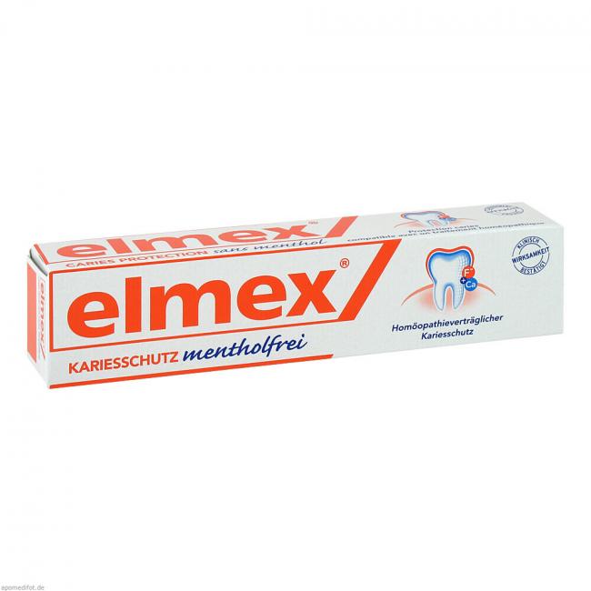 Im Rahmen der homöopathischen Therapie soll der Genuss von koffeinhaltigen Getränken, Pfefferminz- und Kamillentee, sowie die Anwendung von Präparaten, wie Kampfer, Menthol oder andere starke ätherische Öle enthalten, vermieden werden, weil diese Stoffe die Wirkung homöopathischer Arzneimittel beeinträchtigen oder gar aufheben können. Dies schließt auch den Gebrauch der meisten, herkömmlichen Zahnpasten aus. elmex mentholfrei wurde in enger Zusammenarbeit mit homöopathischen Ärzten entwickelt. Die für die tägliche Anwendung geeignete Zahnpasta entspricht den Anforderungen der klassischen Homöopathielehre und kann auch von Mentholallergikern unbesorgt verwendet werden.