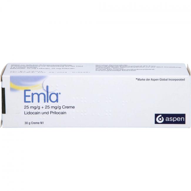 Emla 25 mg/g + 25 mg/g Creme. Wirkstoffe: Lidocain, Prilocain. Anwendungsgebiete: Erwachsene, Jugendliche und Kinder: es kann zur Betäubung der Haut angewendet werden vor einem Nadeleinstich (z.B. wenn Sie eine Injektion bekommen oder zur Blutabnahme) und/oder vor kleineren operativen Eingriffen an der Haut. Erwachsene und Jugendliche: Es kann auch angewendet werden zur Betäubung der Genitalien vor einer Injektion und medizinischen Eingriffen wie Warzenentfernung. Ein Arzt oder das medizinische Fachpersonal sollte EMLA an den Genitalien anwenden. Erwachsene: Es kann auch zur Betäubung der Haut angewendet werden vor Reinigung oder Entfernung von geschädigter Haut bei Beingeschwüren. Warnhinweis: Enthält Macrogolglycerolhydroxystearat (Ph.Eur.).